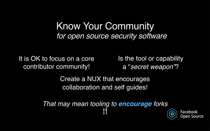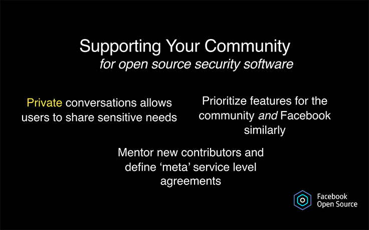 Although Facebook has a long history with open source software (OSS) projects and communities, including React, HHVM, and Hack, we discovered some key differences in supporting an open source community in security.