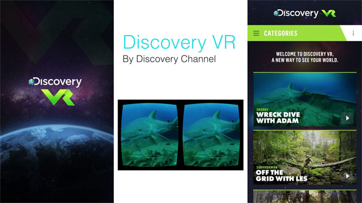 Discovery VR lets you explore Discovery Channels' 360 videos. This was the first VR app built with React Native.