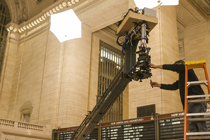 Surround 360 with the protective casing taken off is used at a video shoot at Grand Central Terminal