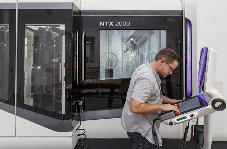- 9-axis mill-turn lathe, used for making complex components that require tight tolerance turning features and milling features on a single part, like our custom-designed, two-axis gimbal for air-to-air and air-to-ground laser communications. With this machine, we can make these parts in one setup and in low volume production; without this machine, parts would have to be machined in multiple setups on multiple machines, which is slow and error-prone.