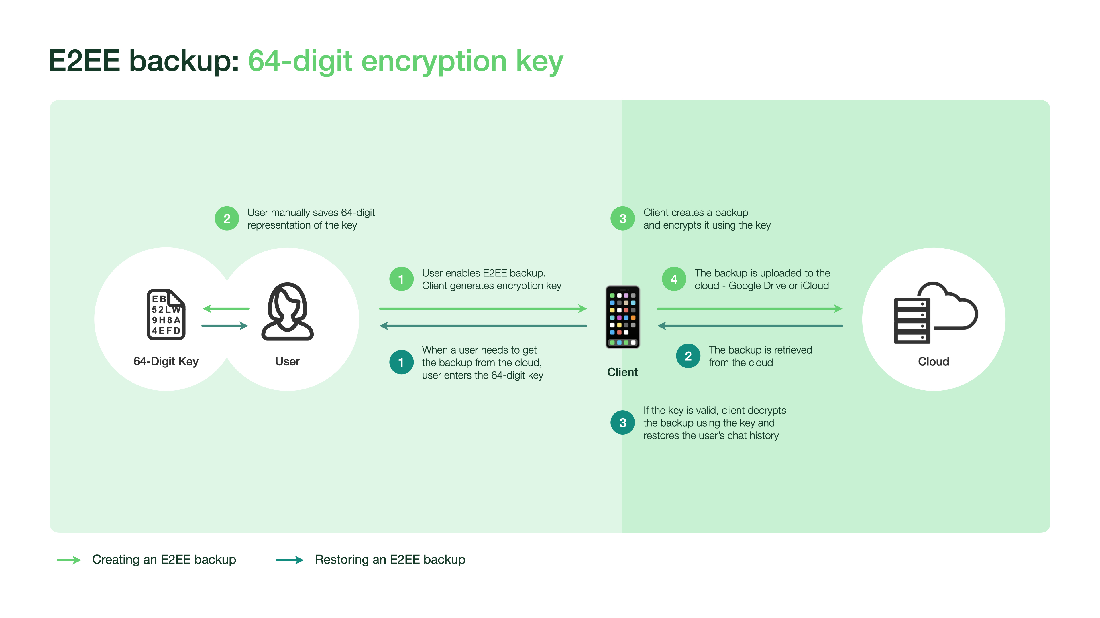 Backups can be end-to-end encrypted using a 64-digit encryption key.