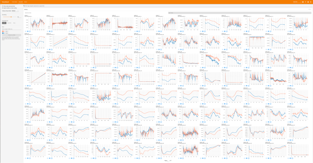 Model telemetry dashboards typically tend to be a large number of timeseries visualizations arranged in a grid – this enables ML engineers to eyeball spatial and temporal dynamics of the model external and internal state over time and find anomalies and correlation structure. A single dashboard hence needs to get a significantly large number of timeseries and their tensors. In order to render at interactive latencies, dashboards batch and fan out queries to Logarithm using the streaming API. The streaming API returns results with random ordering, which enables dashboards to incrementally render all plots in parallel – within 100s of milliseconds to the first set of samples and within seconds to the full set of points.