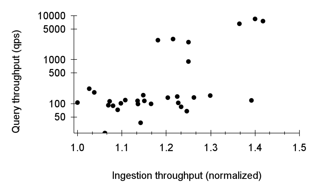 Query processing. Queries are routed randomly across the query clusters. When a query node receives a request, it assumes the role of an aggregator and partitions the request across a bounded subset of query cluster nodes (balancing between cluster load and query latency). The aggregator pushes down filter and sort operators to query nodes and returns sorted results (an end-to-end blocking operation). The query nodes read their partitions of logs by looking up locality, followed by secondary indices and data blocks – the read can span the query cache, ingestion nodes (for most recent logs) and disaggregated storage. We added 2x replication of the query cache to support query cluster load distribution and fast failover (without waiting for cache shard movement). Logarithm also provides a streaming query API with randomized and incremental sampling that returns filtered logs (an end-to-end non-blocking operation) for lower-latency reads and time-to-first-log. Logarithm paginates result sets.