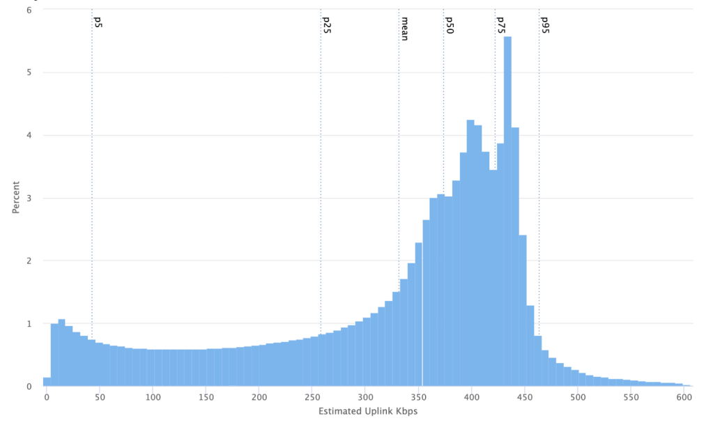 We consider anything less than 300 Kbps to be a low-end network, but we also see a lot of video calls operating at just 50 Kbps, or even under 25 Kbps.