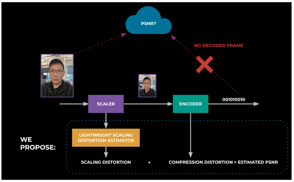 We have come up with a framework for PSNR computation. We first modified the encoder to report distortions caused by compression (most software encoders already have support for this metric). Then we designed a lightweight, scaling-distortion algorithm that estimates the distortion introduced by video scaling. This algorithm can combine these scaling distortions with the encoder distortions to produce output PSNR. We developed and verified this algorithm locally and will be sharing the findings in publications and at academic conferences over the next year. With this lightweight PSNR metric, we saw 2 db improvements with AV1 compared to H.264.