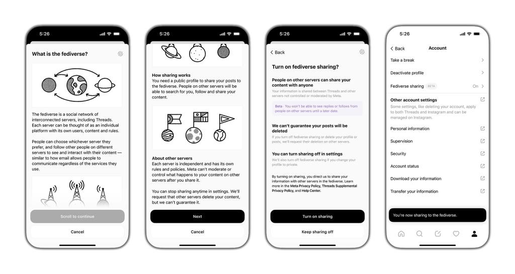 We’re taking a phased approach to Threads’ fediverse integration to ensure we can continue to build responsibly and get valuable feedback from our users and the fediverse community.