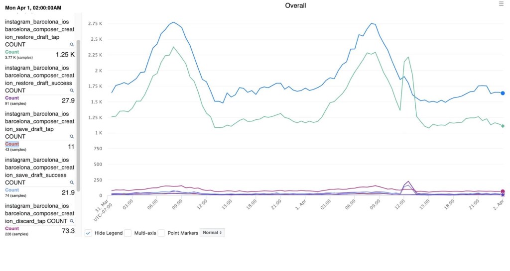 Then, a surprising thing happened: A serious bug took down all of Threads for a short period of time. Though this was bad, it had the side effect of testing some of our resiliency features, including Drafts. We saw a huge spike in usage during the short outage, which confirmed that people were benefiting from being able to save their posts if there was a serious problem.