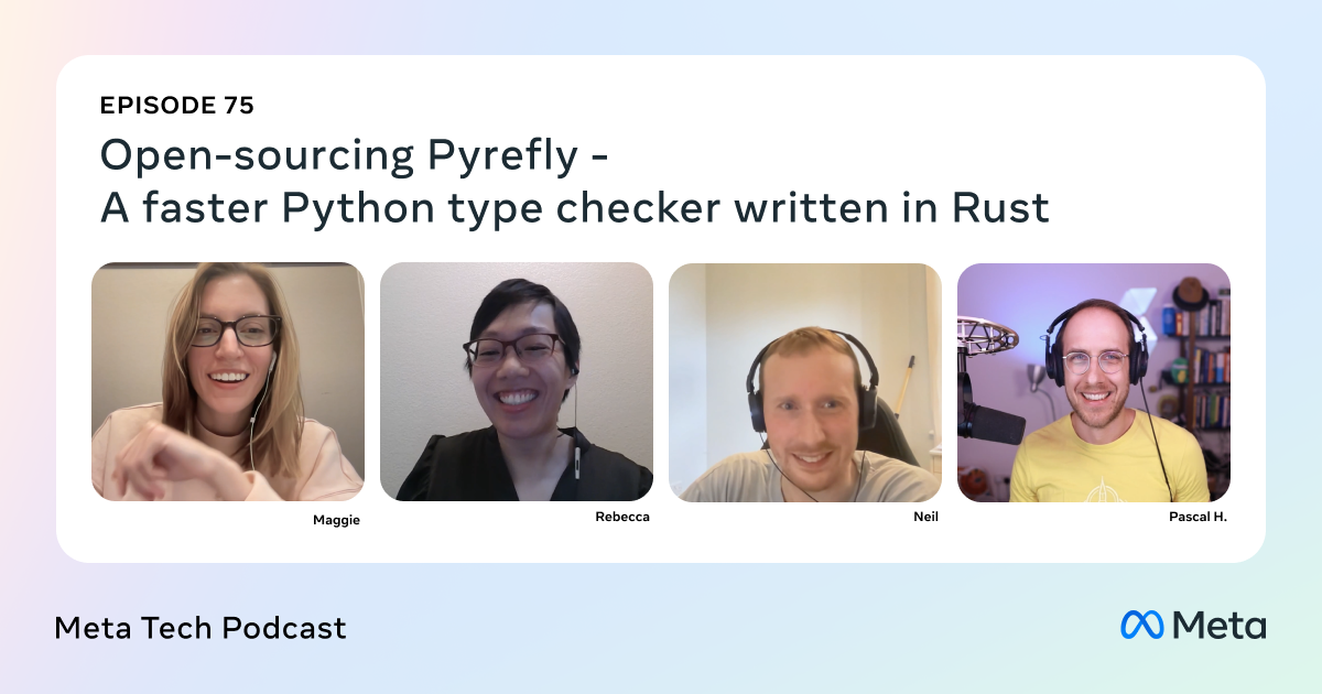 On this episode of the Meta Tech Podcast, Pascal Hartig sits down with Maggie, Rebecca, and Neil — some of the team behind Pyrefly — to discuss this latest release from Meta and how they built an incremental type checker that scales to mono repositories.
