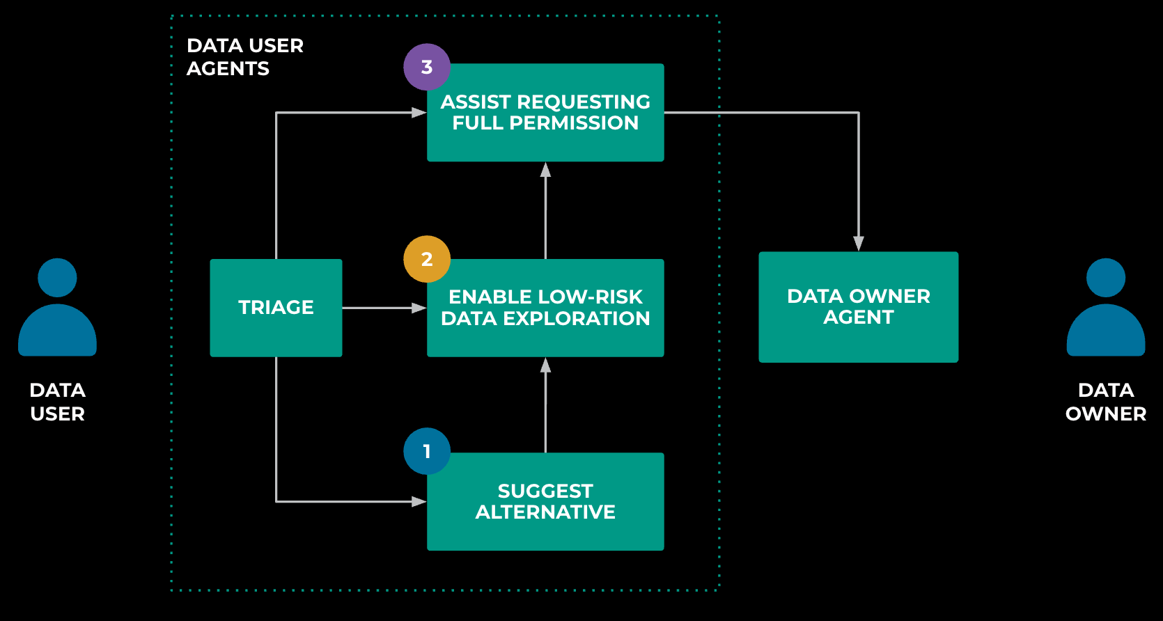 - We detail how we’re developing agents that help users making data access requests to get to the data they need, and that help data owners process requests and maintain security.