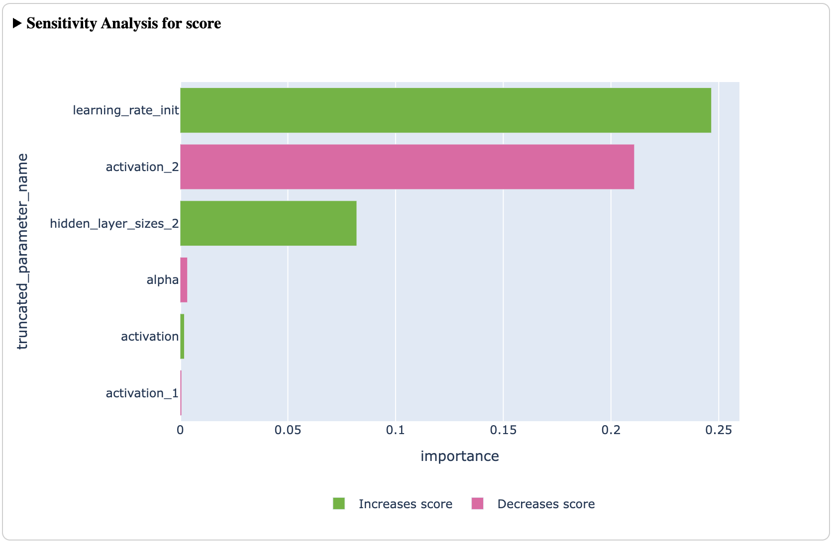 In addition to finding optimal configurations efficiently, Ax is a powerful tool for understanding the underlying system being optimized. Ax provides a suite of analyses (plots, tables, etc) which helps its users understand how the optimization is progressing over time, tradeoffs between different metrics via a Pareto frontier, visualize the effect of one or two parameters across the input space, and explain how much each input parameter contributes to the results (via sensitivity analysis).